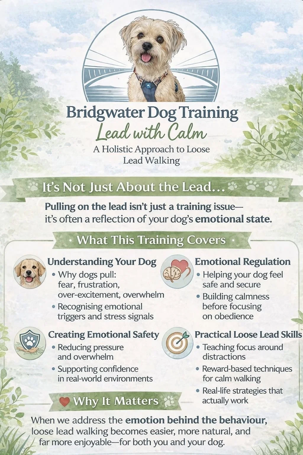 Helping overwhelmed dogs and their owners achieve calm, connected walks through emotional regulation and practical skills.