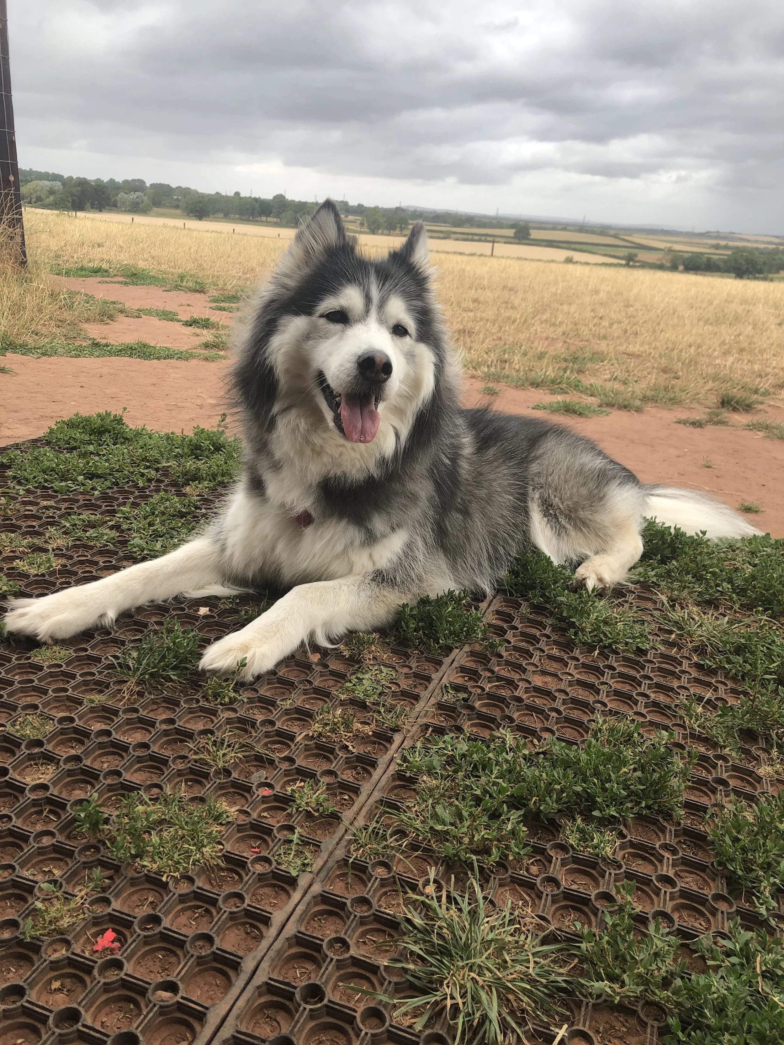 Nova has been through reactivity rehab as she would lunge and growl at other dogs. She’s much happier now and spends most of her time commando crawling on her belly! Nova does distance stooge and close proximity work.